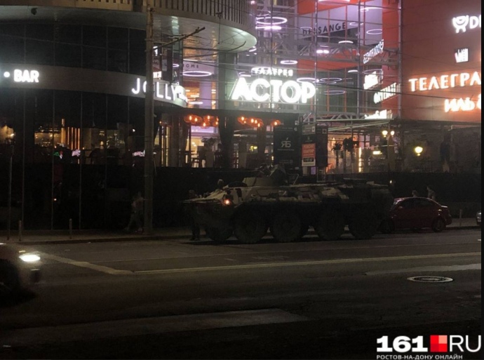 После заявления главаря ЧВК "Вагнер" Евгения Пригожина о фактическом объявлении войны против армии РФ в соцсетях публикуют фото бронетехники на улицах Ростова-на-Дону, а на подъездах к Москве обустраивают блокпосты.