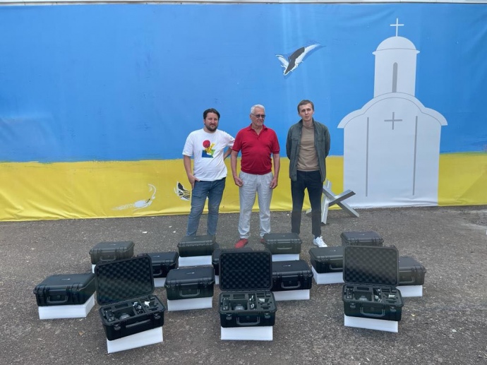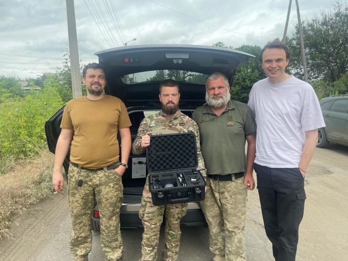 Військові та волонтер Микола Давидюк, який передав дрони від УП 93-й бригаді
