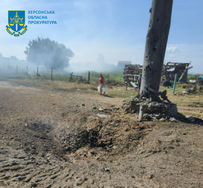 К вечеру вражеские войска атаковали село в Бериславском районе, был травмирован местный житель. По предварительным данным, обстрел мирного поселения осуществлялся управляемыми авиабомбами.