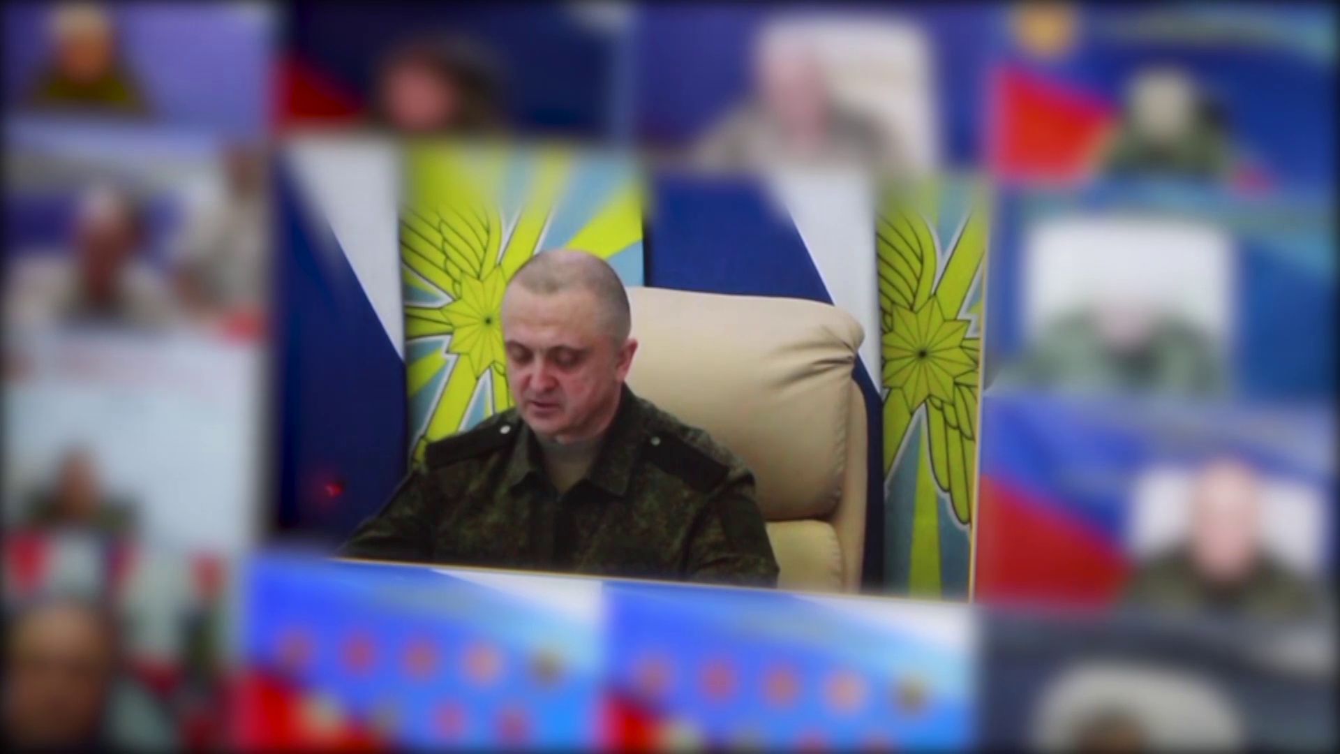 Герасимов появился на брифинге по видеосвязи с начальником штаба Воздушно-космических сил России генерал-полковником Виктором Афзаловым.
