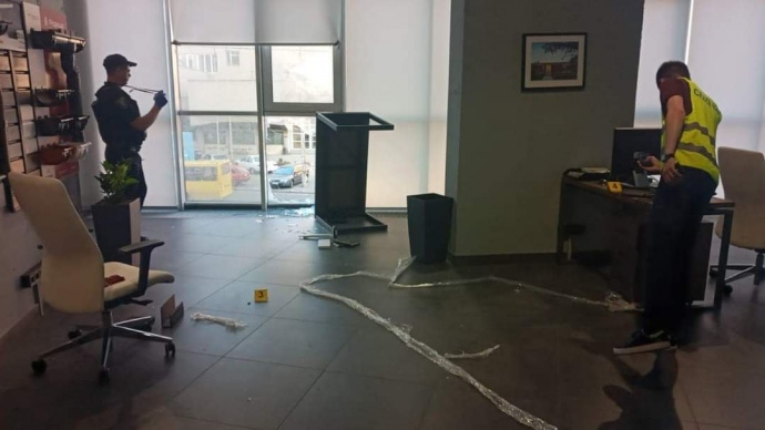 Дословно полиция: "Утром неизвестный зашел в офисное помещение на улице Бойчука, в результате чего сработала сигнализация. По прибытию наряда частной охраны, мужчина выстрелил в сторону сотрудников и ранил одного из них".