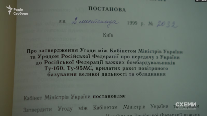 Согласно этому документу, Киев передал Москве восемь тяжелых бомбардировщиков Ту-160 и три Ту-95МС, а также 575 крылатых ракет Х-55. За это Россия компенсировала Украине долг за российский газ - на сумму 275 миллионов гривен. Это - определенная стоимость переданного оборудования.