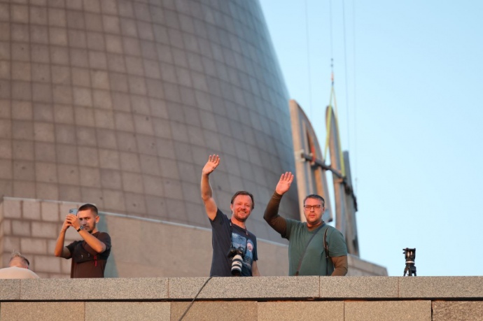 Детали: Трезубец доставили к монументу вечером 5 августа. Однако из-за невозможности закрепить герб в темное время суток, монтажные работы перенесли на утро.
