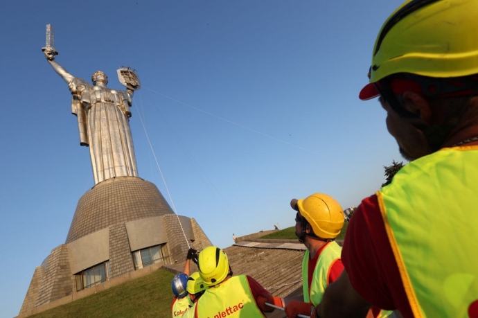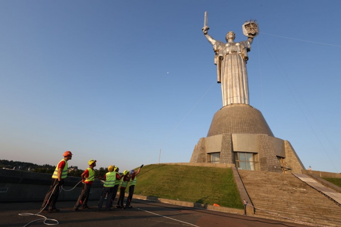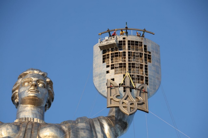 УСТАНОВКА ТРЕЗУБЦА НА "РОДИНУ-МАТЬ". ФОТО: ДМИТРИЙ ЛАРИН, УП