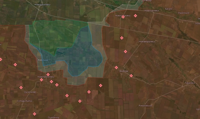 Детали: По данным военных аналитиков, в последние дни украинская армия борется за прорыв российских позиций у села Вербово, примерно в шести милях (9,6 км) к востоку от села Роботино.