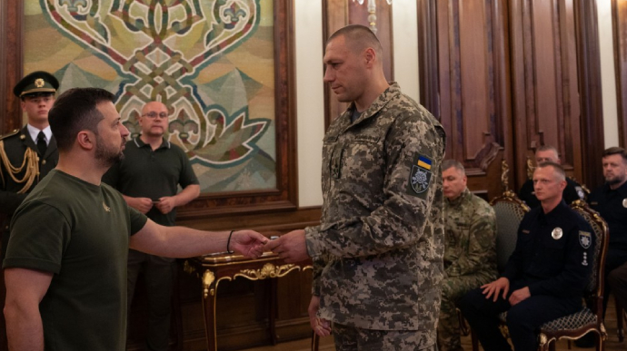 Президент Владимир Зеленский присвоил высшие воинские и специальные звания и вручил погоны военнослужащим сил обороны и правоохранительных органов Украины.