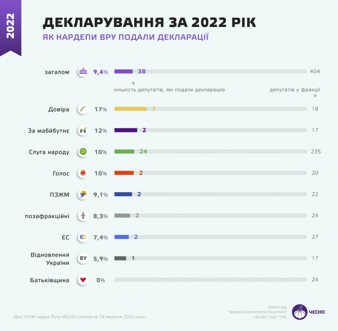 За 2022 год только 38 депутатов добровольно подали имущественные декларации – движение "Чесно"