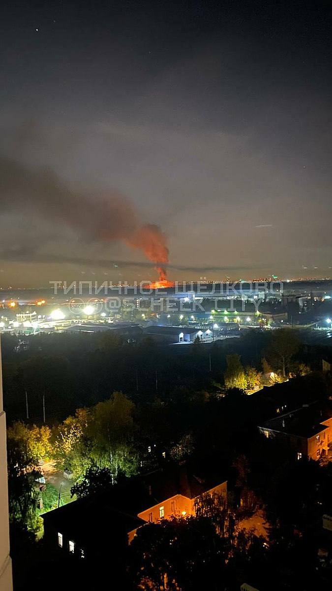 Фото сильного пожара в подмосковном городе Щёлково появилось в сети. Там находится военный аэродром "Чкаловский" и одна из воинских частей МО России.