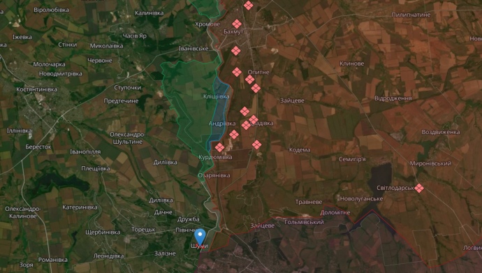 Украинские военные за минувшие сутки имели успех вблизи сел Клищеевка, Отрадовка и Шумы на бахмутском направлении.