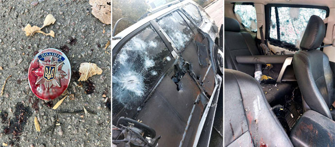 Прямая речь Клименко: "Удар был такой силы, что пробило броню. Пострадали двое полицейских. Они госпитализированы, один из патрульных в крайне тяжелом состоянии".
