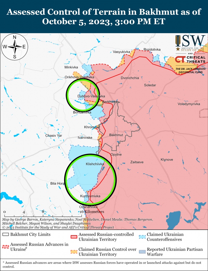 Детали: По информации аналитиков, украинские силы проводили наступательные операции вблизи Бахмута и продвинулись 5 октября. Генеральный штаб ВСУ сообщил, что украинские силы достигли успеха к востоку от Андреевки.