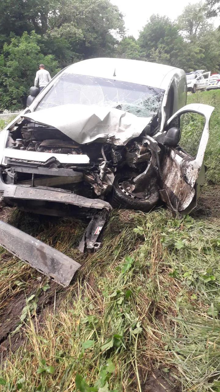 Одна из машин стала причиной ДТП примерно в 30 километрах от Тернополя. Автомобиль, принадлежавший дипломатам посольства Польши в Киеве, протаранил автомобиль, стоявший на обочине. От удара легковушка перевернулась на бок в кювет, а ее водитель выпал через окно.