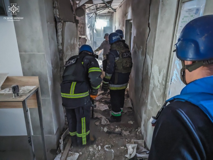 Дословно ГСЧС: "В Покровске завершены аварийно-спасательные работы на месте обстрела. Из-под завалов двух частично разрушенных админзданий спасены 3 человека".