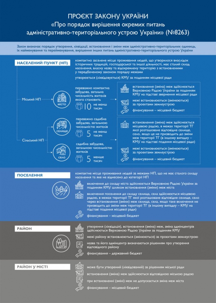 Источник: закон №8263 "О десоветизации порядка решения отдельных вопросов административно-территориального устройства Украины" на сайте ВРУ, нардеп Ярослав Железняк в Telegram