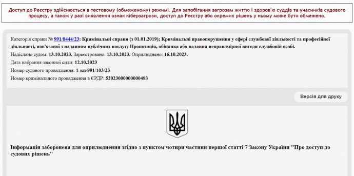 Высший антикоррупционный суд засекретил приговор адвокату Олегу Горецкому, которого вместе с экс-главой Верховного суда Князевым разоблачили на получении 2,7 млн долларов США.