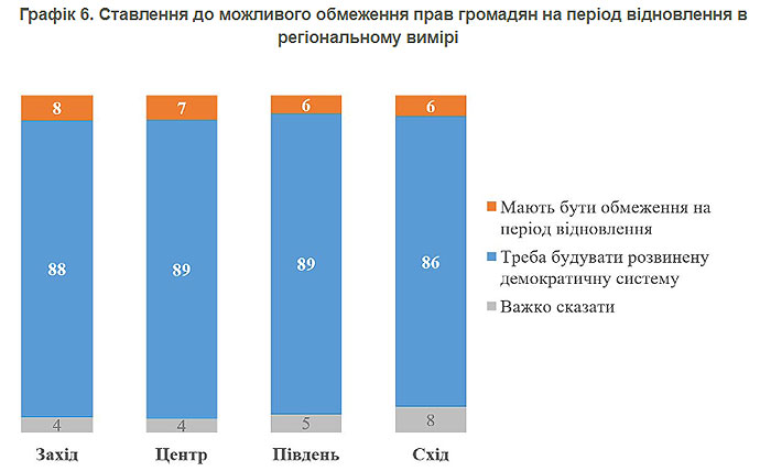 Против ограничений на период восстановления выступает абсолютное большинство опрошенных во всех регионах Украины.