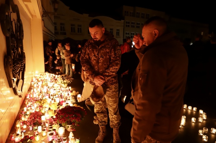 В Ужгороде и Мукачево вечером 6 ноября собрались люди, чтобы почтить память погибших от удара россиян 3 ноября воинов 128-й отдельной горно-штурмовой бригады.