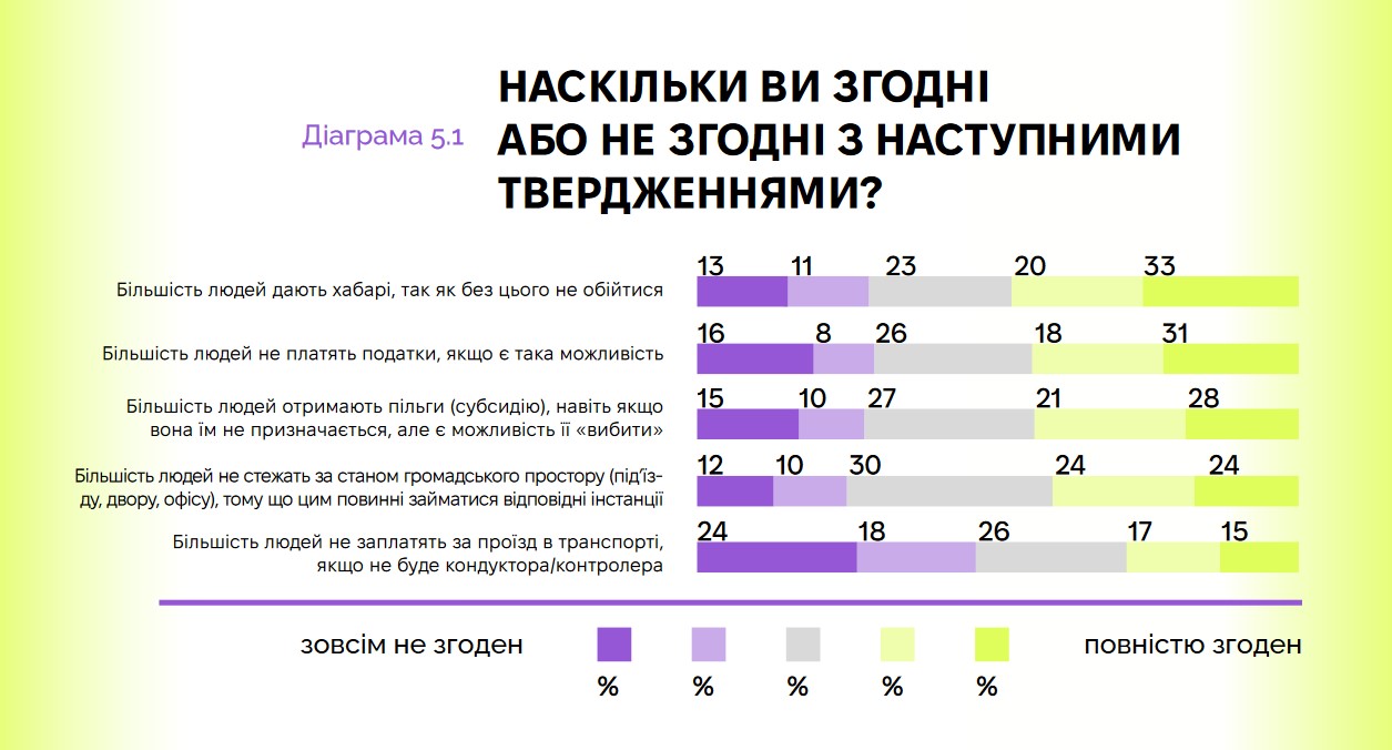 53% украинцев считают, что люди преимущественно дают взятки, поскольку без этого невозможно обойтись.