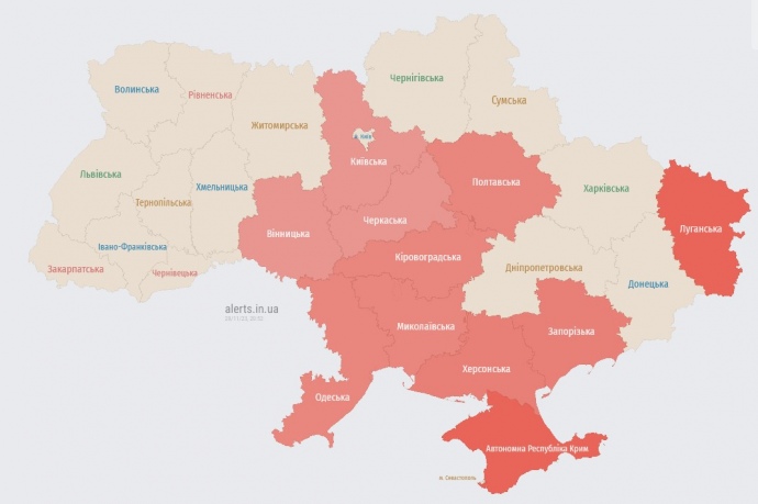 Обновлено: По состоянию на после полуночи 29 ноября был объявлен отбой во всех областях, кроме Хмельницкой, где, по сообщению властей работала ПВО.