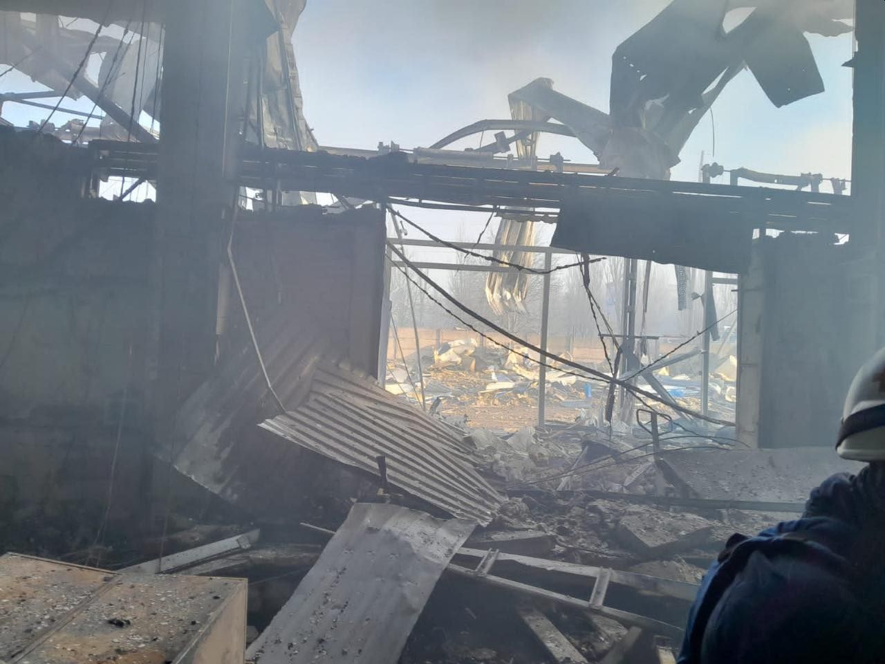 Прямое попадание и пожар, возникший в результате этого, полностью уничтожил запасы гуманитарной помощи для жителей Херсонщины, которые хранились на складе.