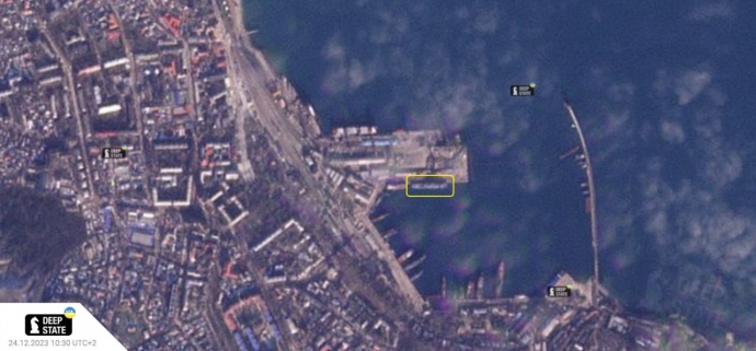 Дословно DeepState: "На спутниковом снимке, сделанном утром 24 декабря, рамочкой обведено ВДК. На другом фото то, что от него осталось".