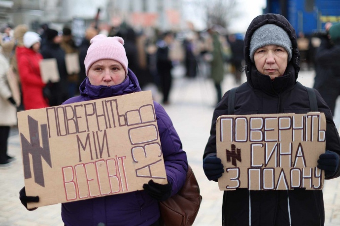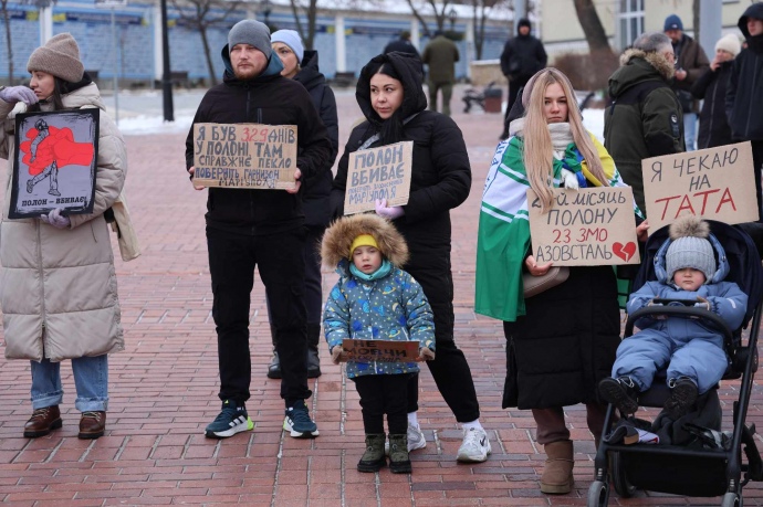 В центре Киева 7 января родственники пленных военнослужащих, в частности, защитников "Азовстали", собрались на акцию Free Azov.