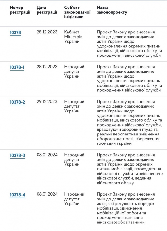 В Верховной Раде зарегистрировано уже 5 законопроектов по совершенствованию мобилизации: правительственный и 4 альтернативных.