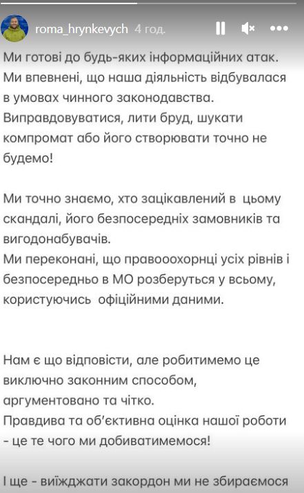 Детали: Роман утверждает, что деятельность его семьи происходила в условиях действующего законодательства и скандал заказной. Также добавил, что его семья не будет оправдываться, потому что "не в чем", и отметил, что бежать за границу они не планируют.