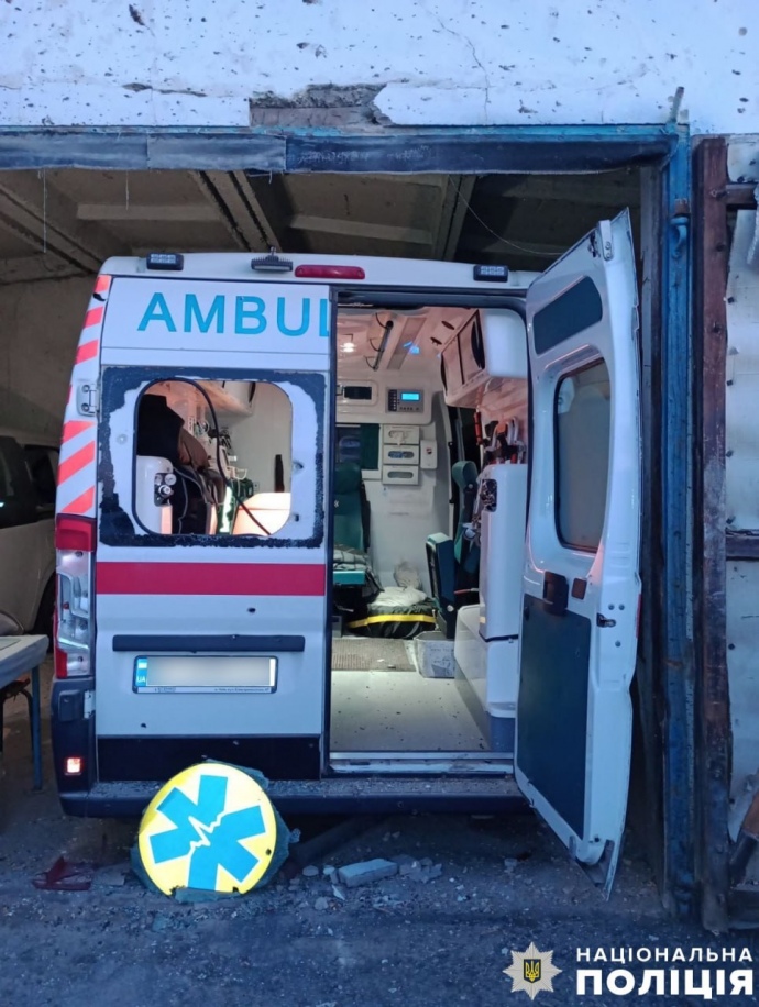 В результате сброса боеприпасов с БПЛА четверо спасателей получили ранения, поврежден пожарный автомобиль. Под обстрелом находилось и медицинское учреждение, повреждены здание и "скорая"".