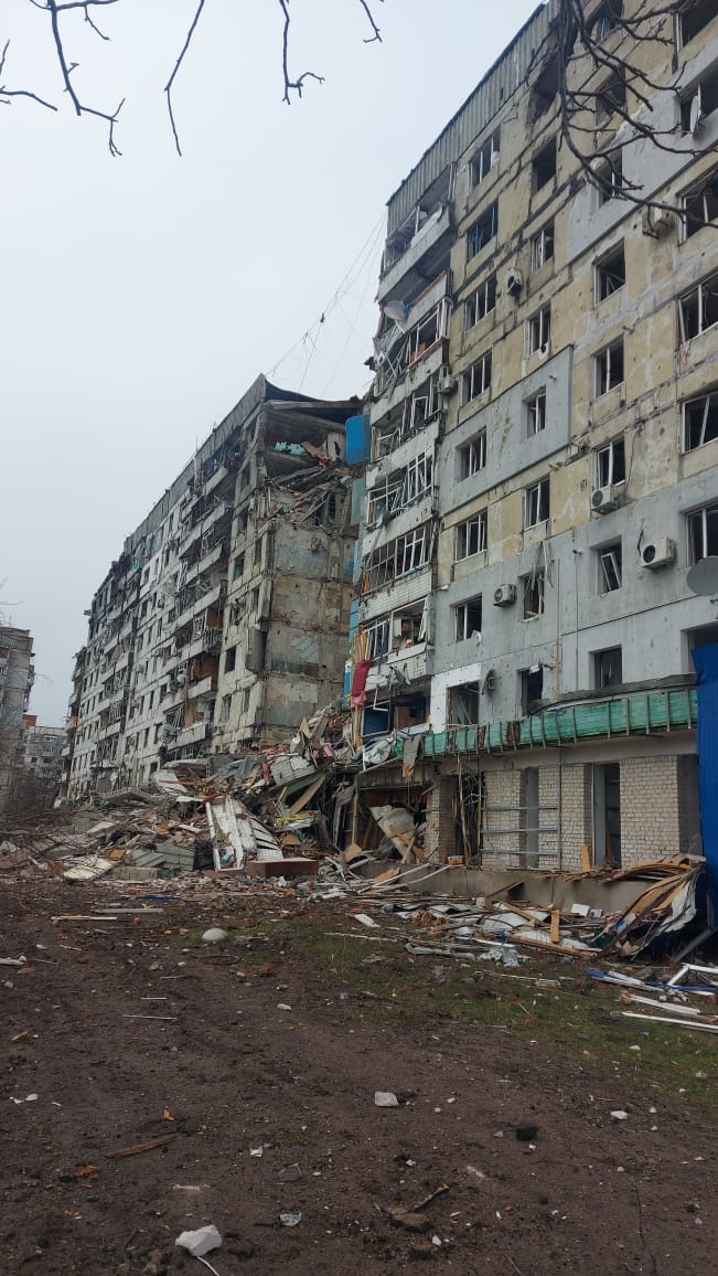 Вражеские бомбы попали в нежилые здания и многоэтажный дом. Целый подъезд уничтожен".