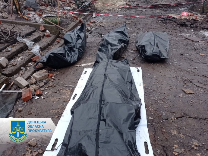 Детали: Позже Донецкая областная прокуратура уточнила, что погибшими оказались семья: 85 и 86-летние отец и мать и их сын 54 лет, а также двое соседей 69 и 73 лет.