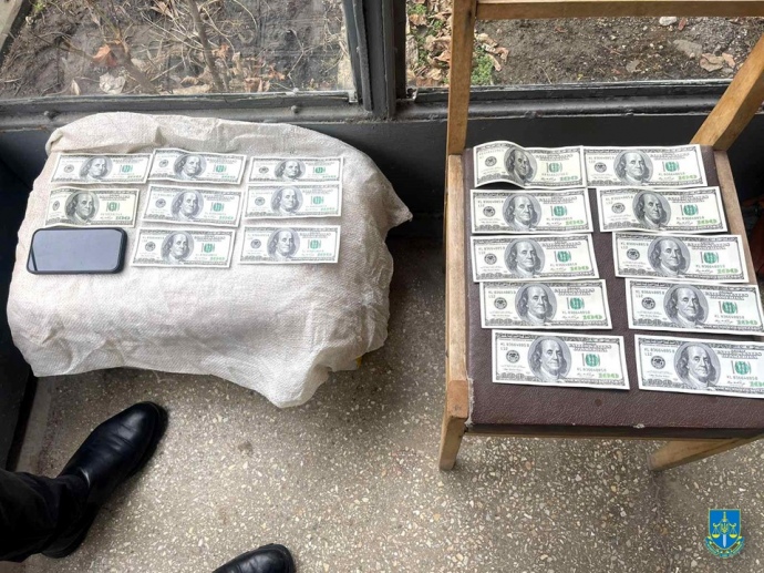 Дословно: "Задержан врач в военном госпитале на Хмельнитчине во время получения второй части неправомерной выгоды в размере 1800 долларов США. Первую часть он получил в качестве аванса накануне.