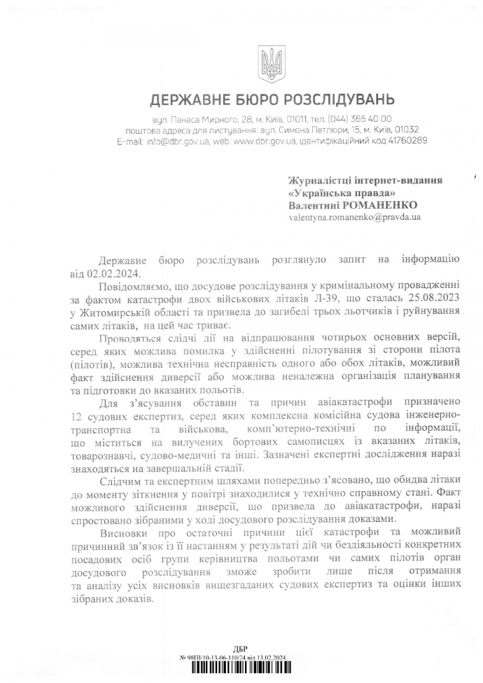 Источник: ответ ГБР на информационный запрос "Украинской правды"