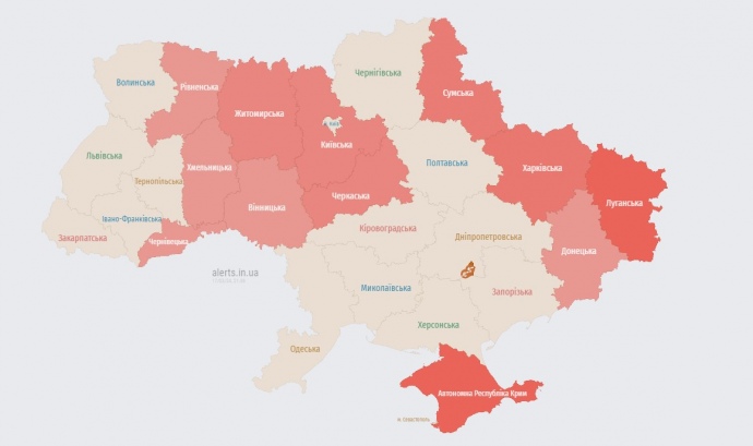 По состоянию на 20:56 "Шахеды" наблюдаются в Винницкой, Черкасской и Житомирской областях, движутся в северо-западном направлении.