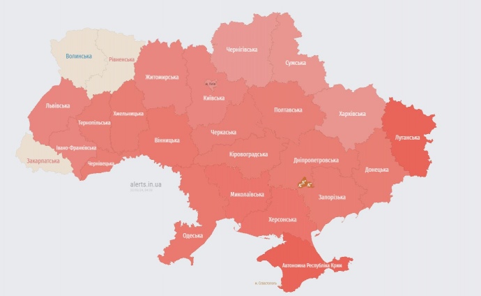 Обновлено в 05.17. Воздушная тревога распространилась на всю Украину.