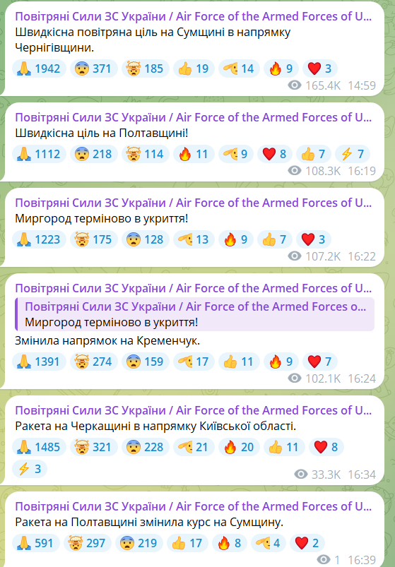 Источник: карта тревог, Воздушные силы в Telegram