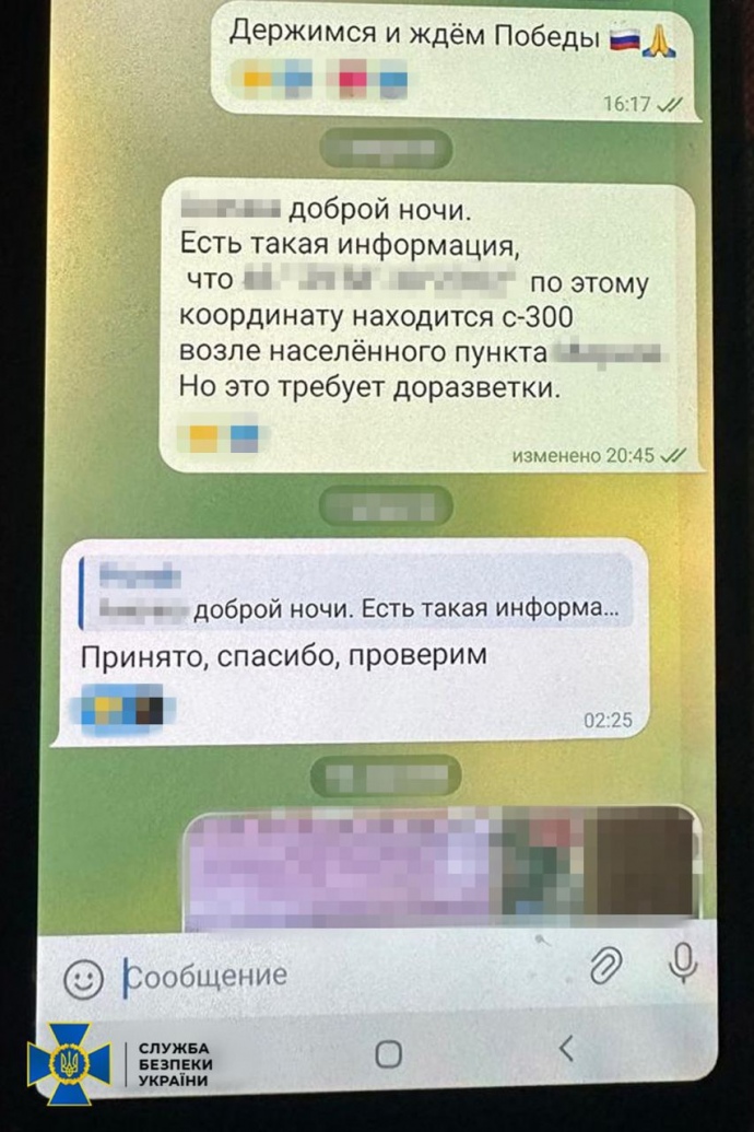 Информатора задержали, когда тот передавал координаты ПВО сотруднику разведки России. Во время обыска в квартире задержанного изъяли три боевые гранаты и патроны к стрелковому оружию.