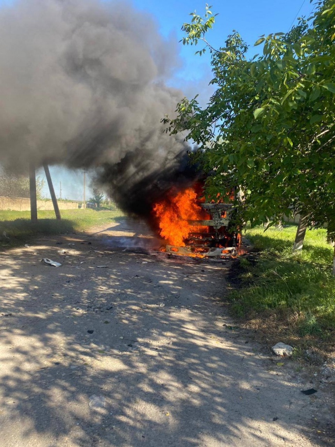 Россияне дотла сожгли грузовик, который вез питьевую воду жителям Берислава