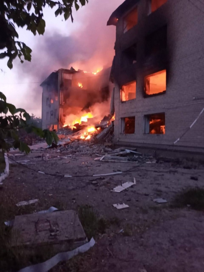 Вечером 4 мая российские войска атаковали ими же разрушенное учебное заведение в Бериславе, в результате атаки возник пожар.
