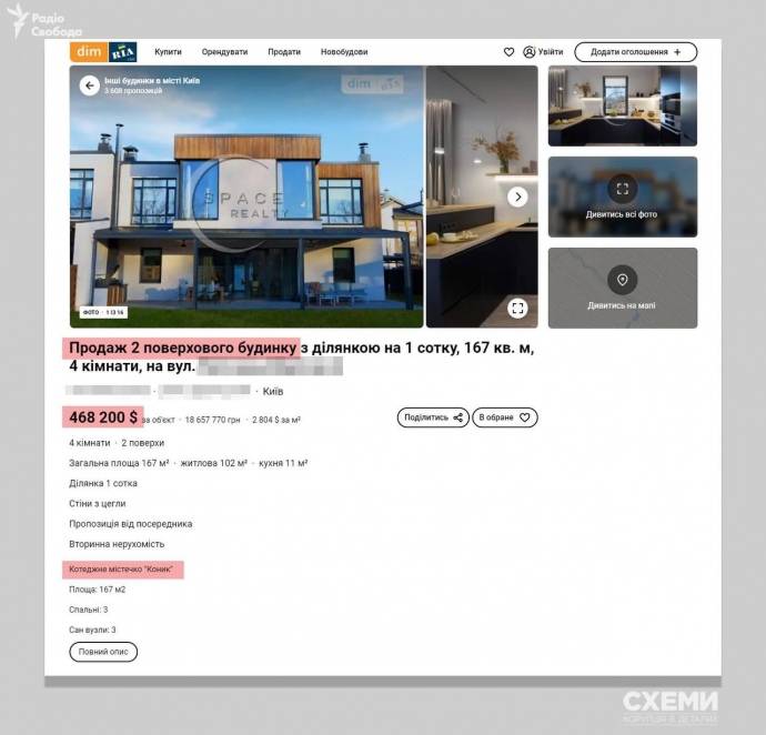 Со ссылкой на договоры купли-продажи расследователи пишут, что сумма сделки составила 2,8 миллиона гривен. Это 2 миллиона гривен за дом и 800 тысяч гривен за землю.