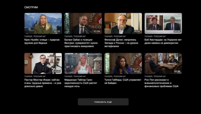 Детали: Сообщается, что шоу "TUCKER" является совместным проектом YouTube-канала "Карлсон ТВ" и "России 24".