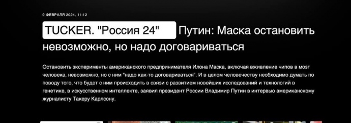 - 29 февраля американский журналист Такер Карлсон в подкасте другого американского журналиста Лекса Фридмана рассказал о своих впечатлениях от интервью с Путиным и признал, что Кремль пытается демонизировать украинцев, называя их нацистами.