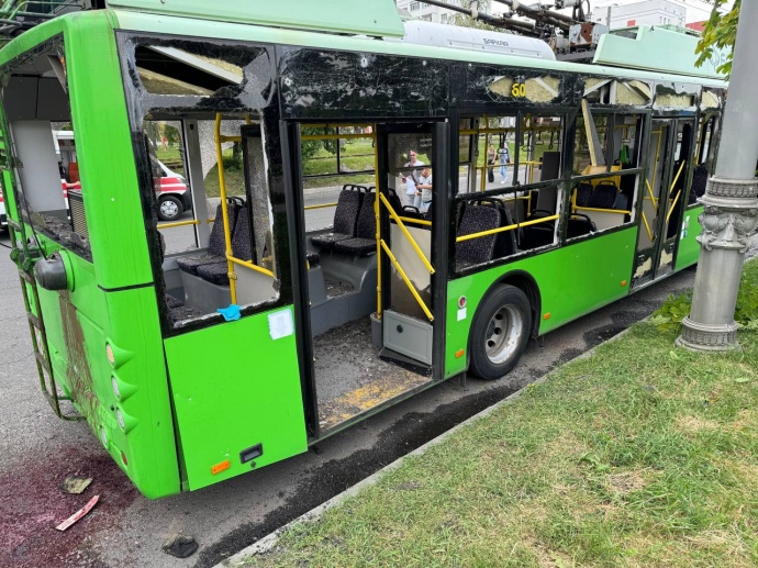 Обновлено в 14.13: Терехов написал о 4 раненых. По словам Синегубова, в тяжелом состоянии сейчас находится водитель троллейбуса. Также из-за российской атаки загорелся многоквартирный дом, повреждены автомобили.