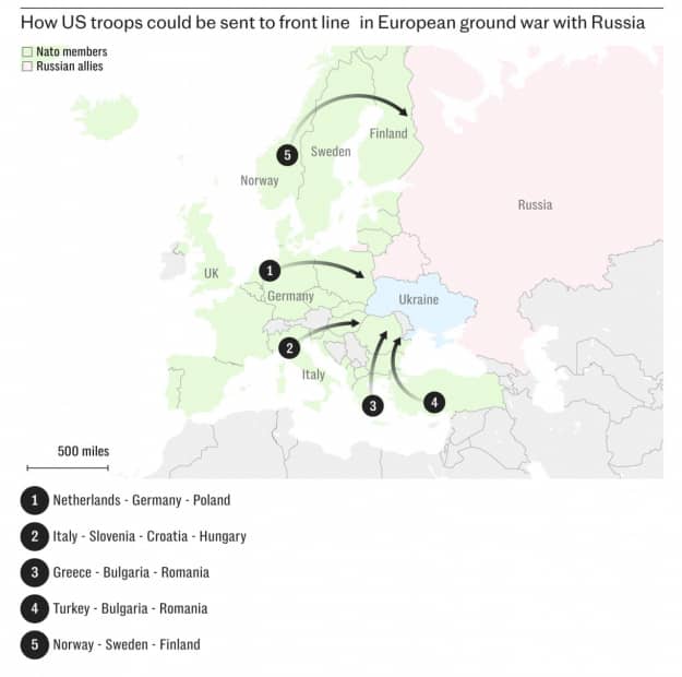 - Дополнительно, пишет The Telegraph, разрабатываются планы переброски войск через порты на Балканах, а также через Норвегию, Швецию и Финляндию.