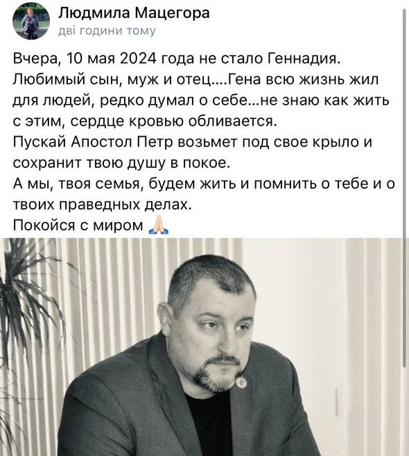Обновлено: Позднее российское издание "Медиазона" сообщило, что информацию о смерти экс-мэра Купянска опубликовал фейковую учетную запись, которая выдавала себя за его мать. Официального подтверждения смерти Мацегоры не было.