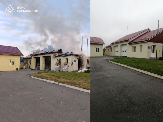 Дословно: "Отреконструированное в 2009 году здание пожарной части впервые было уничтожено оккупантами в 2022-м. В том же году, после деоккупации села Липцы, его полностью восстановили и подразделение ГСЧС стало на боевое дежурство. Сегодня здание уничтожено во второй раз".