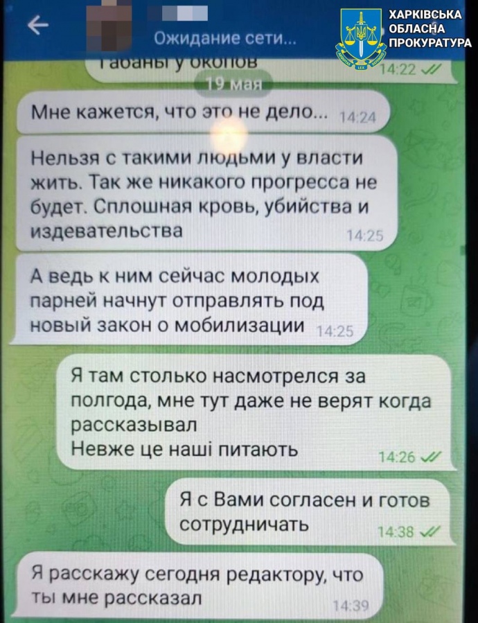 Она якобы работает журналисткой и рассказывает о событиях на Харьковщине от обычных местных жителей. Именно эта девушка выполняла роль "связной" между подозреваемым и российскими спецслужбами".