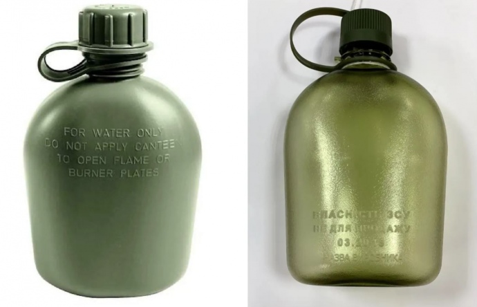 Журналисты утверждают, что все отличие с американскими втрое дешевле аналогами - "полупрозрачный пластик и надпись "Собственность ВСУ, не для продажи", немножко другая резьба на крышке и петля-держатель".