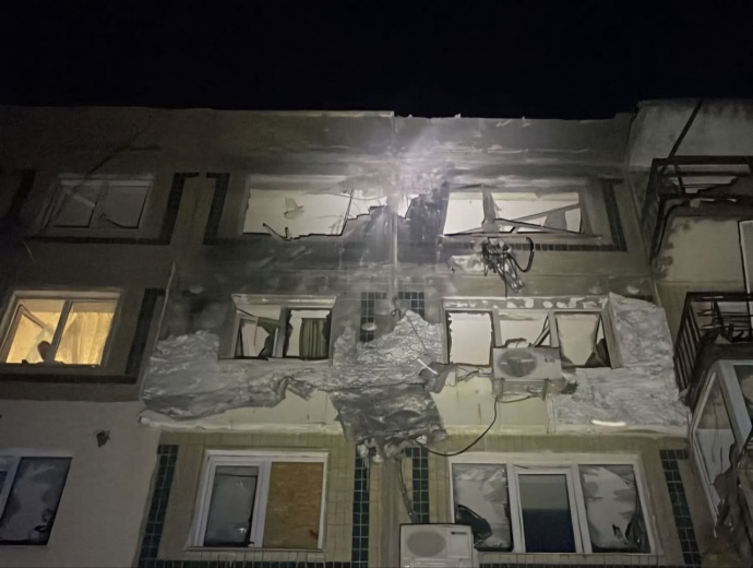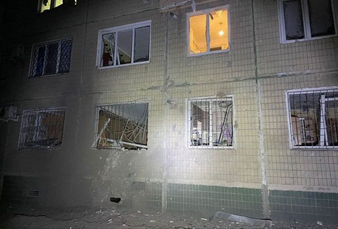 Прямая речь Лысака: "Оккупанты попали по райцентру и Красногригорьевской общине. Ранена 68-летняя женщина. Она в больнице в состоянии средней тяжести. Повреждена инфраструктура. В частности, магазины и спортклуб. А еще 4 пятиэтажки и 3 авто. Задело газопровод и линию электропередач".