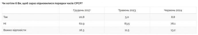 Детали: Согласно исследованию, в последние годы существенно возросло число граждан Украины, которые негативно относятся к возможности восстановления СССР в любой форме. По сравнению с 2017 годом доля тех, кто ответил, что хотел бы, чтобы сейчас восстановились порядки времен СССР, уменьшилась с 21% до 9%, и с 63% до 78% выросла доля тех, кто не хотел бы этого.